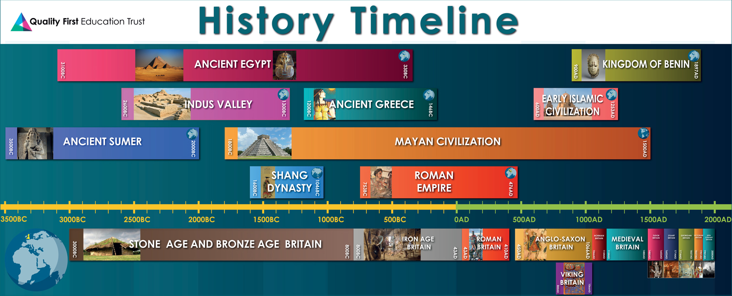 History shapes who we are. It is in every family story, every building, every painting, map or new archaeological discovery. Understanding history give us a better understanding of the world, of ourselves, of different places and people. Through the teaching of history, we develop children to think like historians: how to use evidence, develop their questioning, to make interpretations and connections and to understand context. Above all to understand history is never simple, often controversial and that one view or perspective will never give the whole picture.